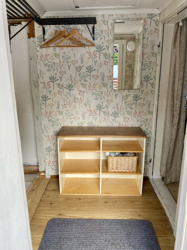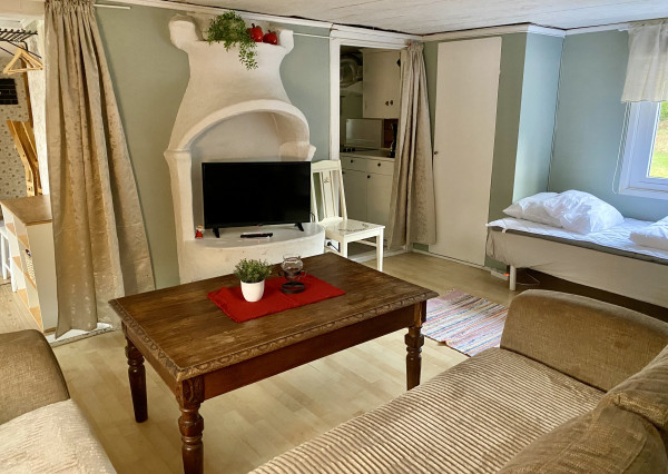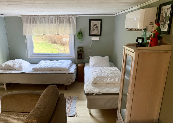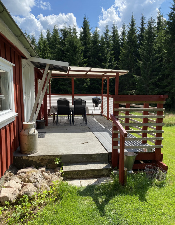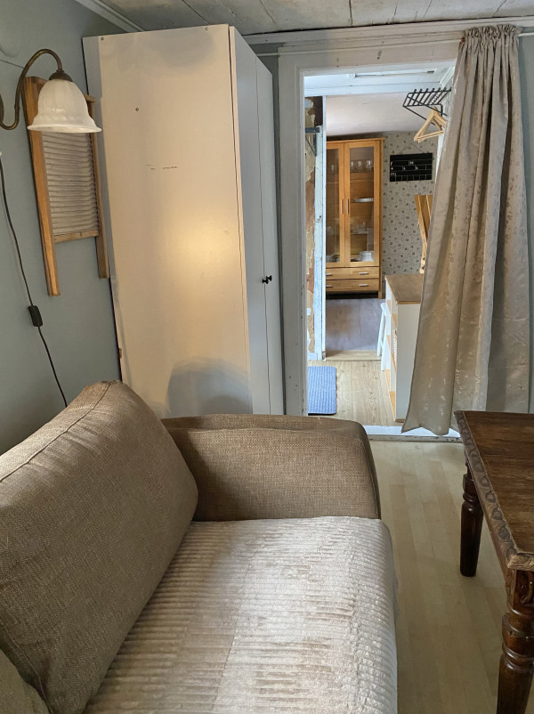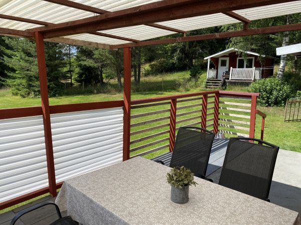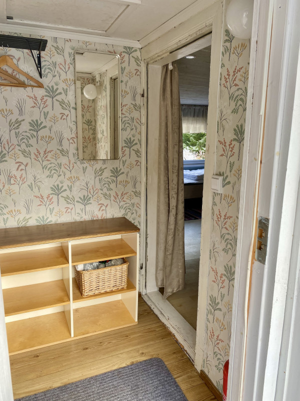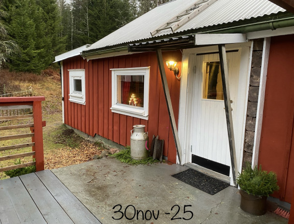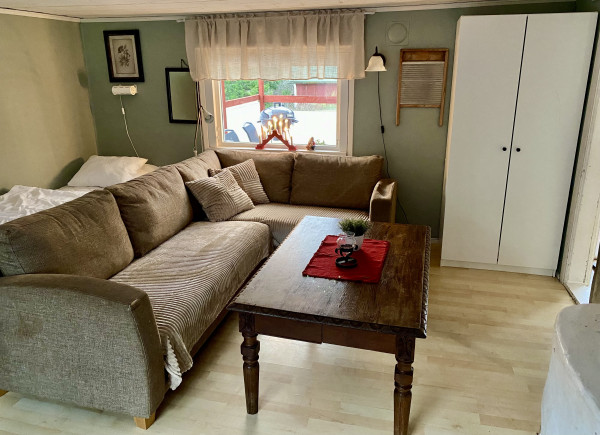 - Den lilla gäststugan till vänster om stugan används som förvaringsutrymme.