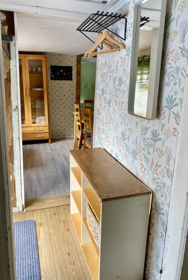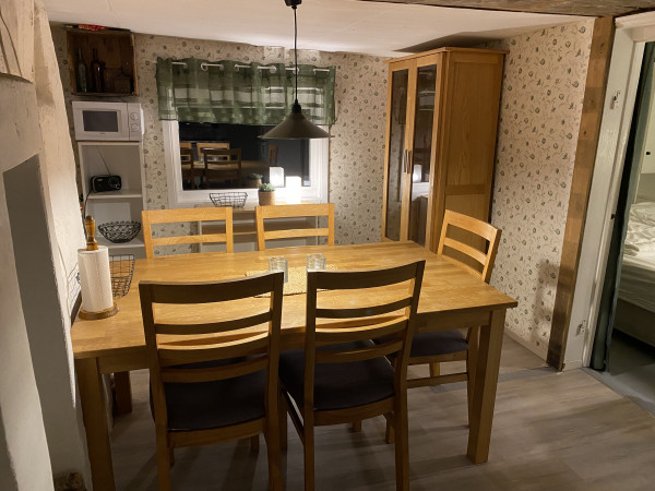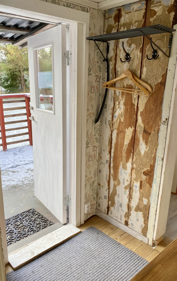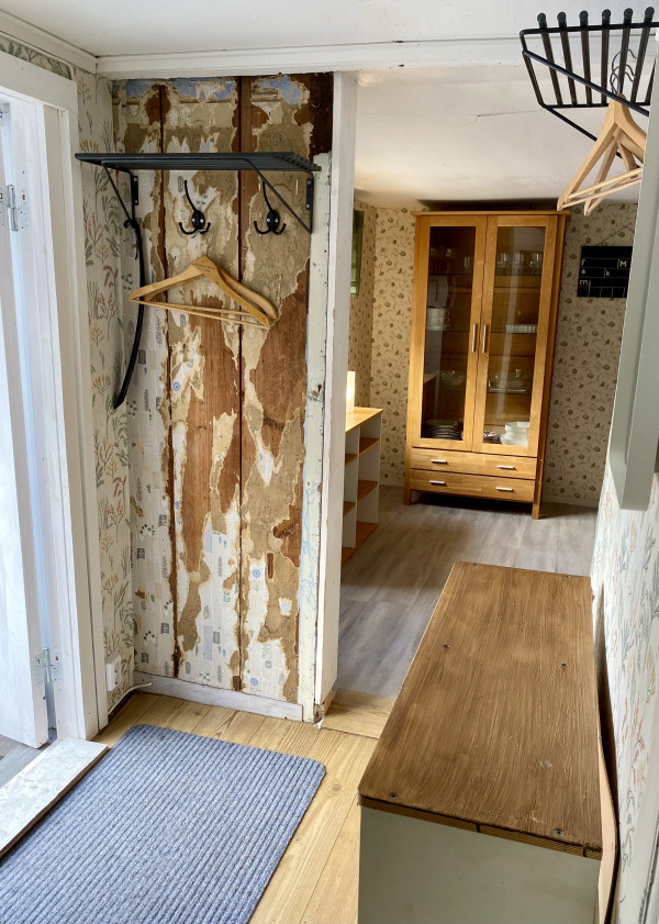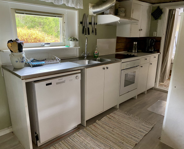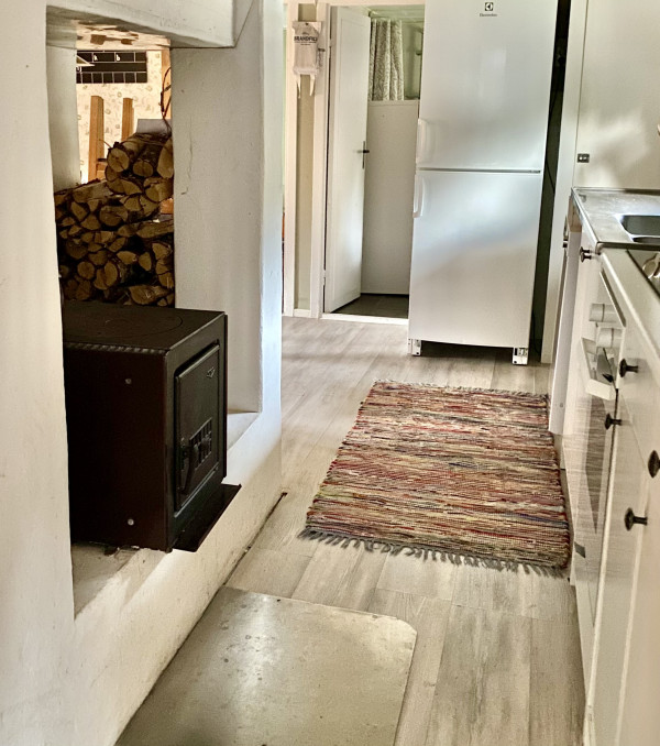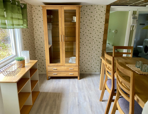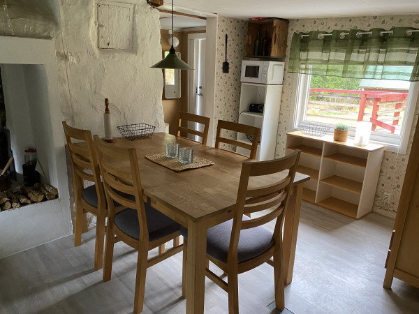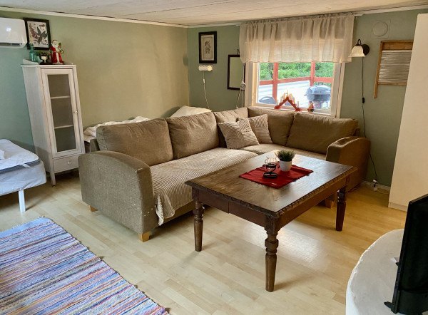 - Den lilla gäststugan till vänster om stugan används som förvaringsutrymme.